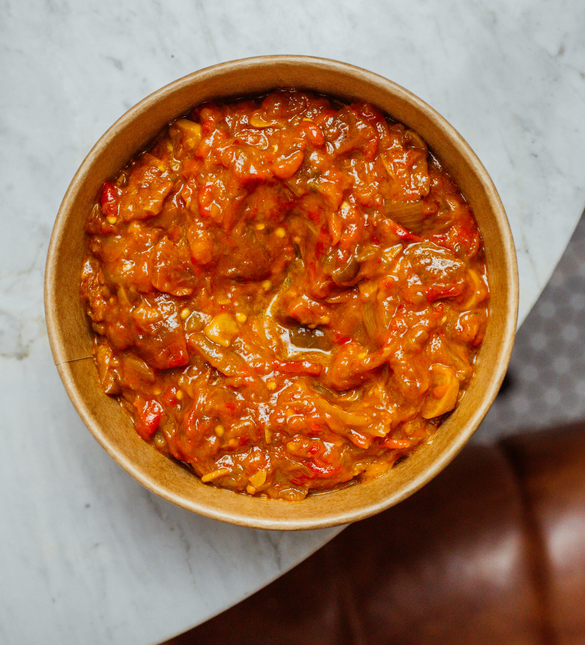 Nossa deliciosa pasta de tomates com pimentões e condimentos