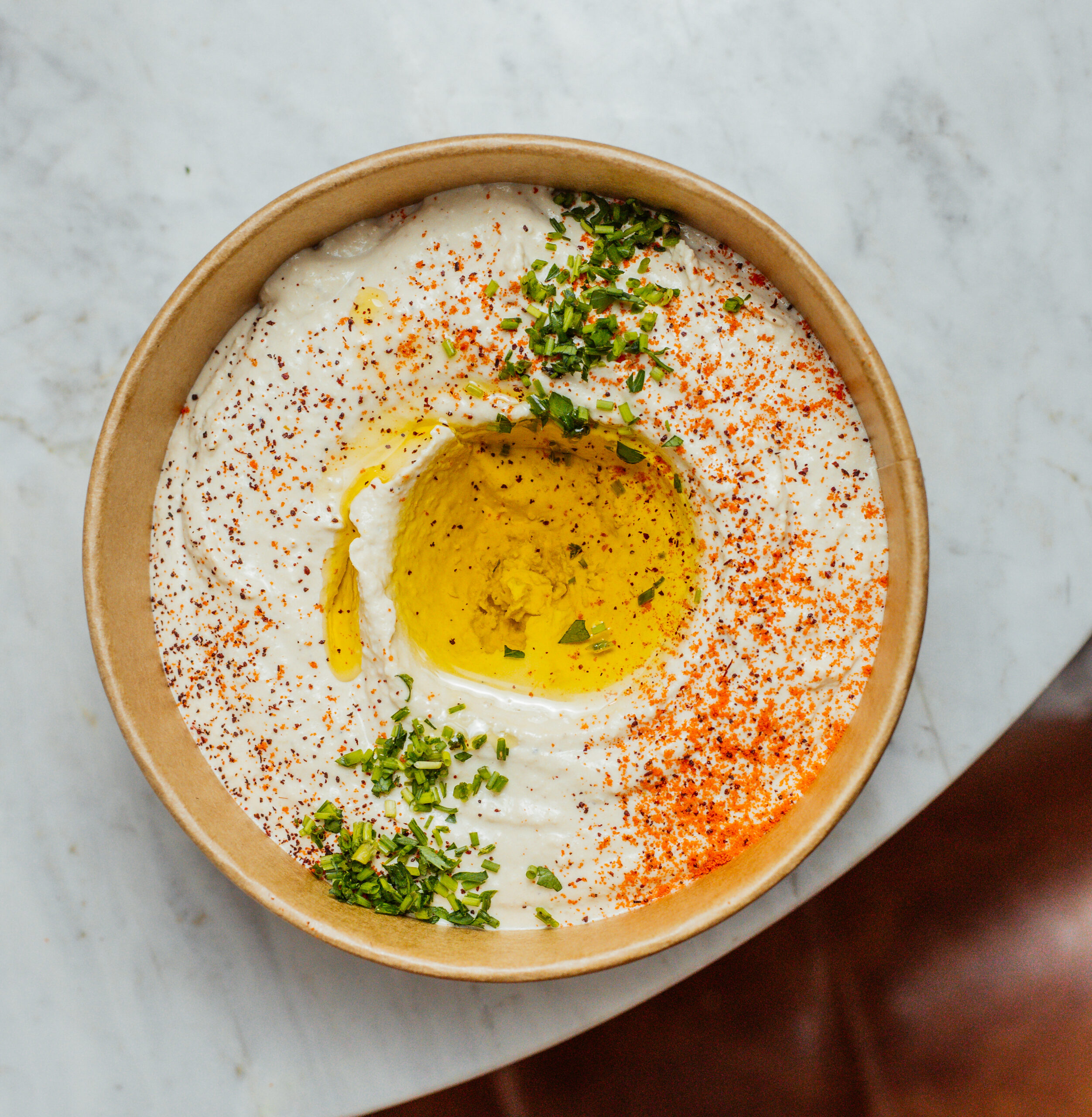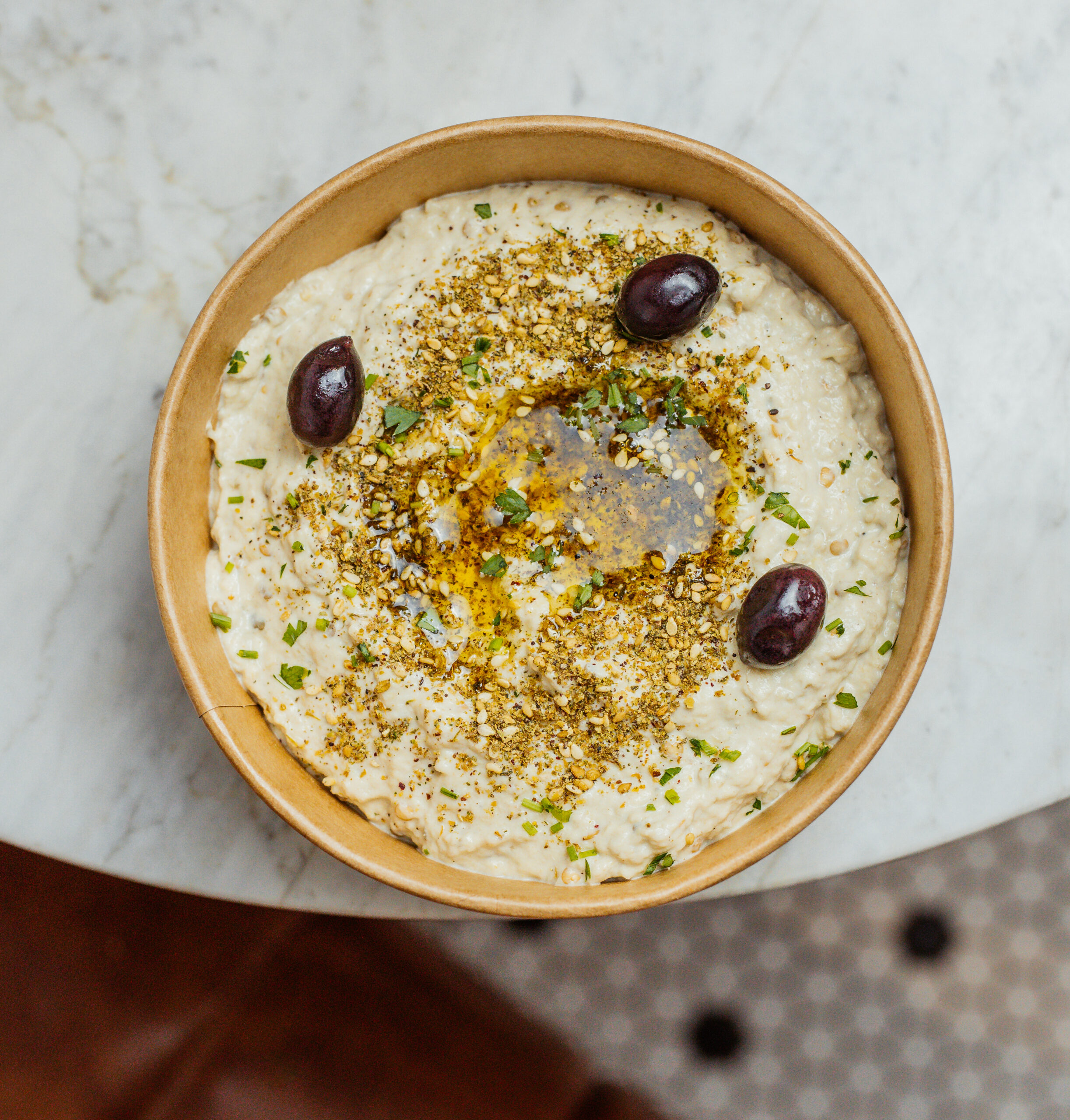 Nossa deliciosa pasta de grão de bico e condimentos